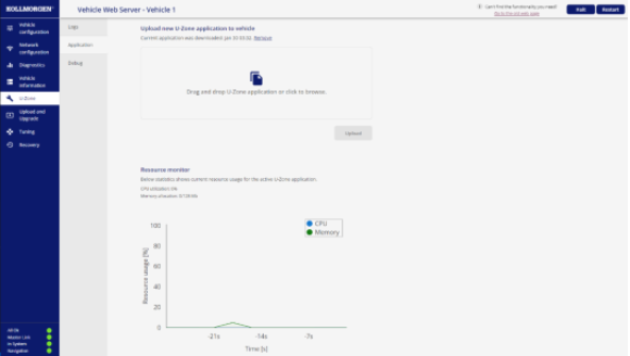 portant; overflow-wrap: break-word !important;">02 我們還在新的車輛網(wǎng)頁界面里添加了U-Zone菜單,以便您上傳和監(jiān)控使用U-Zone的應(yīng)用程序。您也可以通過資源監(jiān)視器查看U-Zone應(yīng)用程序的CPU功率和內(nèi)存使用情況。
