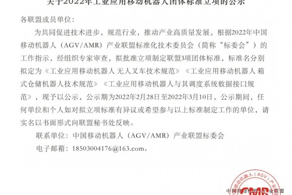 【4.20】《工業應用移動機器人與其調度系統數據的接口規范》即將發布!