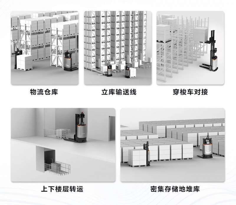 基于F4車體執(zhí)行能力,兼容1.5T~3T,通過定制不同叉齒寬度長度,適配不同料架搬運,支持線邊緩存搬運、設(shè)備對接、駛?cè)胧截浖芎蜋M梁式貨架區(qū)存儲等,叉取通道空間縮減了40%。