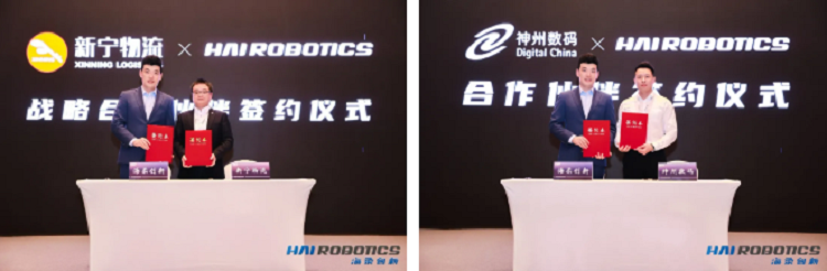 在此次生態合作伙伴大會上,海柔與新寧物流達成戰略合作,與神州數碼達成深度合作。神州數碼集團物聯網事業部銷售總監蒲良進表示,智能物流機器人的引入,是加速企業倉儲智慧化進程的必經之路,也是客戶暢享更高效便捷、符合需求的服務核心所在。此次簽約,正是神州數碼對海柔創新項目的交付能力、產品口碑、全流程專業服務等多維度認可。在未來,神州數碼將發揮自身30000余家渠道資源優勢,助力海柔創新將箱式倉儲機器人推向全國。
